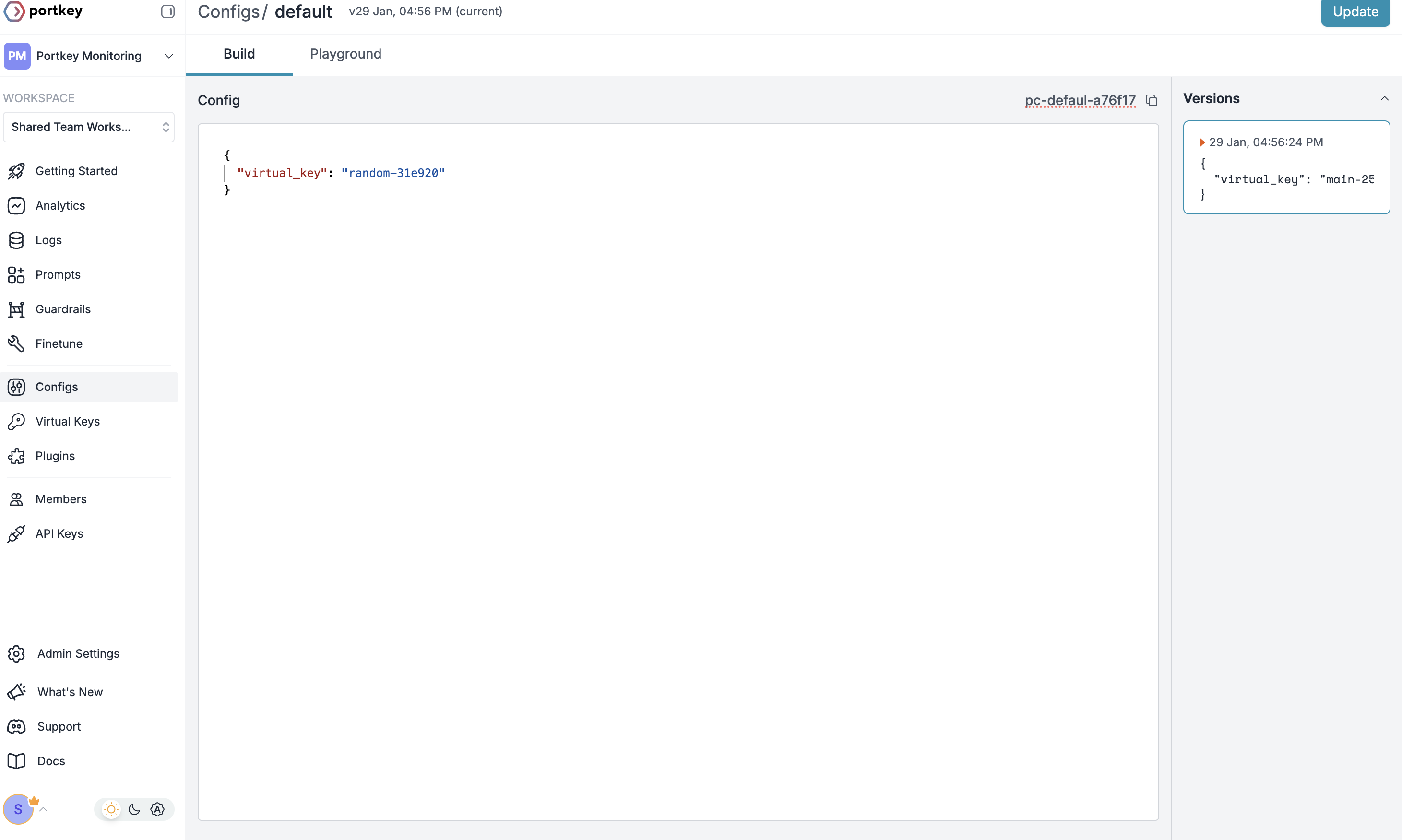 This basic config connects to your virtual key. You can add more advanced portkey features later.
